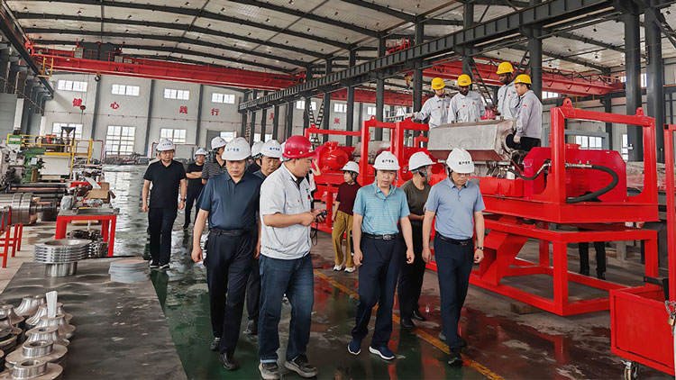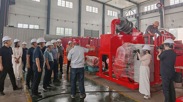 視察過程中,領導們深入正道能源工廠的生產車間,實地察看了固控設備的生產流程、工藝技術和質量管控情況。在鉆井液離心機和泥水分離系統等產品的生產區域,領導們駐足良久,仔細詢問了這些設備的性能特點、生產進度以及市場應用等情況。工廠相關負責人詳細介紹道,鉆井液離心機可高效分離鉆井液中的固相顆粒,泥水分離系統則能實現泥水的快速分離與凈化,目前已在相關領域發揮了重要作用.
