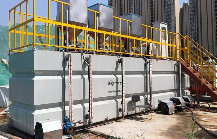 絮凝劑先投入料斗中,藥罐底部設有螺旋推進器,螺桿將適量的絮凝劑投入預混和裝置與適量的清水混合,然后通過旋流器進入配制槽。配料槽與調和槽內皆裝有槳葉式攪拌器,二級調和后流入儲料槽,由加藥泵投加。儲料槽內設有液位儀,當儲料槽內物料達到預設的高水位時,水閥與加藥螺桿會自動停止,絮凝劑調和的濃度可以由進水流量及加藥推料螺桿頻率調整。