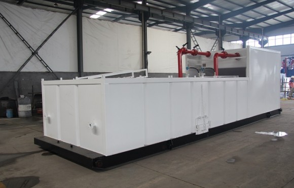 水冷卻罐又稱強水冷卻循環罐,主要是用來給油田鉆井過程中給為鉆井現場調配泥漿用水降溫。由于鉆井地下水溫度過高,容易影響調配鉆井泥漿性能,為了保證泥漿調配,水冷卻罐的作用可以通過其內置的散熱管線和風機快速降低水溫,液體經過散熱器,由暖風機提供風力對液體進行強冷;液體經罐體底部冷卻管散熱,并由管道泵對液體進行攪拌。以到達泥漿調配所需水的溫度。也就是客戶所需要溫度的液體。